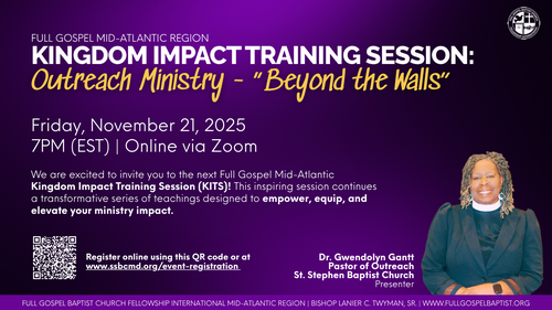 Join us online on Friday, November 21st at 7PM for our Kingdom Impact Training Session on outreach. Register below to let us know you'll be there.