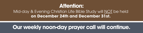 Choose and click on one of the platforms below to watch our Christian Life Bible Study live on Wednesdays at 12:30PM & 7:00PM.